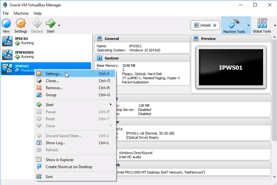 So, what I am going to do is right-click and IPWS01 and click on Settings.