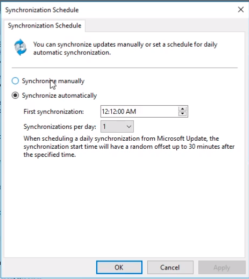 We see that we have the option to Synchronize manually and Synchronize automatically. These options were set when we ran the configuration wizard, but can be changed here.