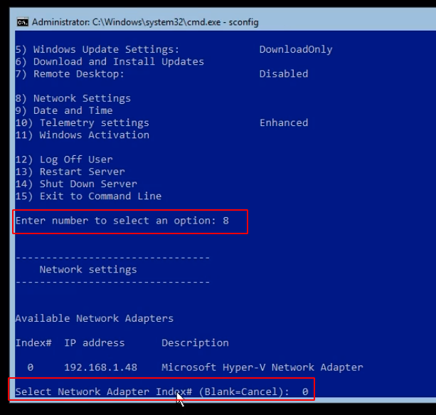 Select the Network Adapter Index by typing the number 0 and pressing Enter.