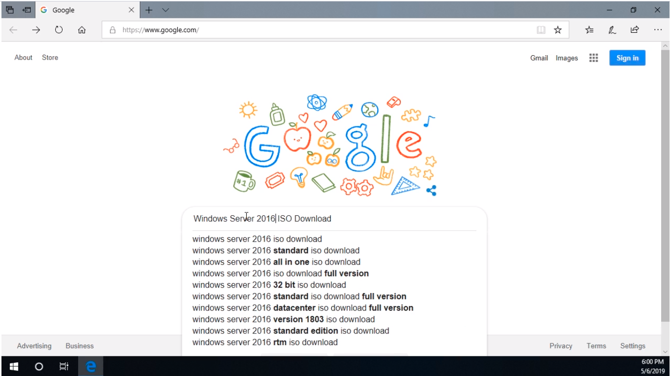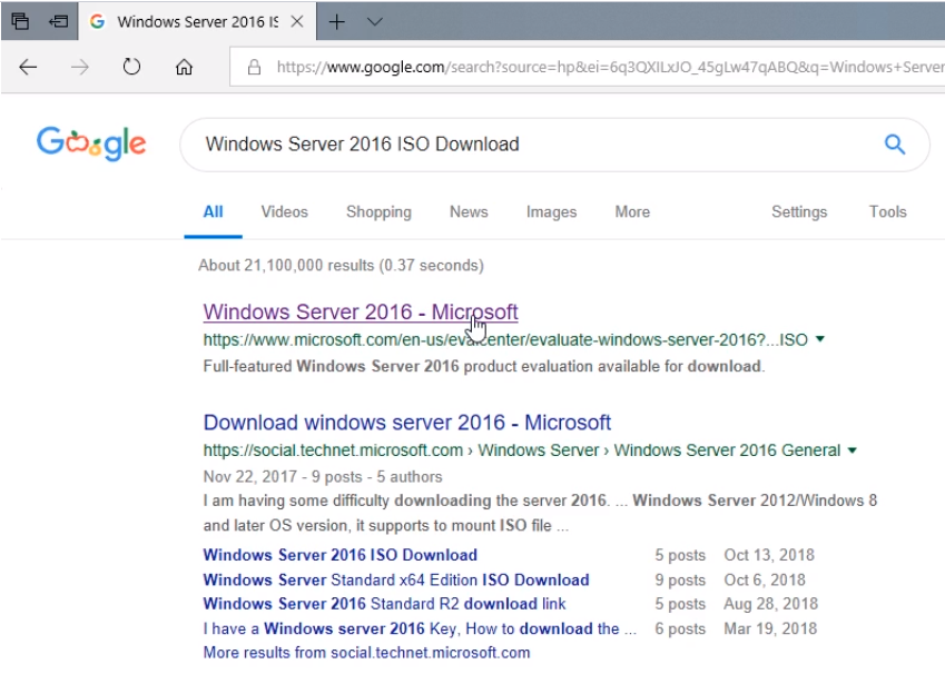 So, what we are going to do is open our preferred web browser and navigate to https://www.google.com and search for Windows Server.