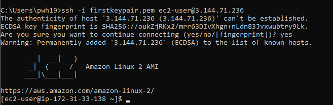 ssh -i /path/to/firstkeypair.pem ec2-user@1.2.3.4