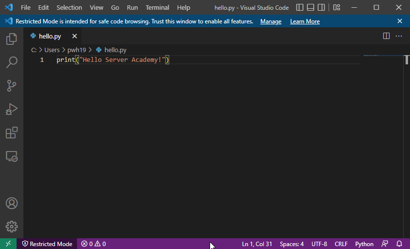 Let's say we create a file called "hello.py" and put the command above inside our users home directory.